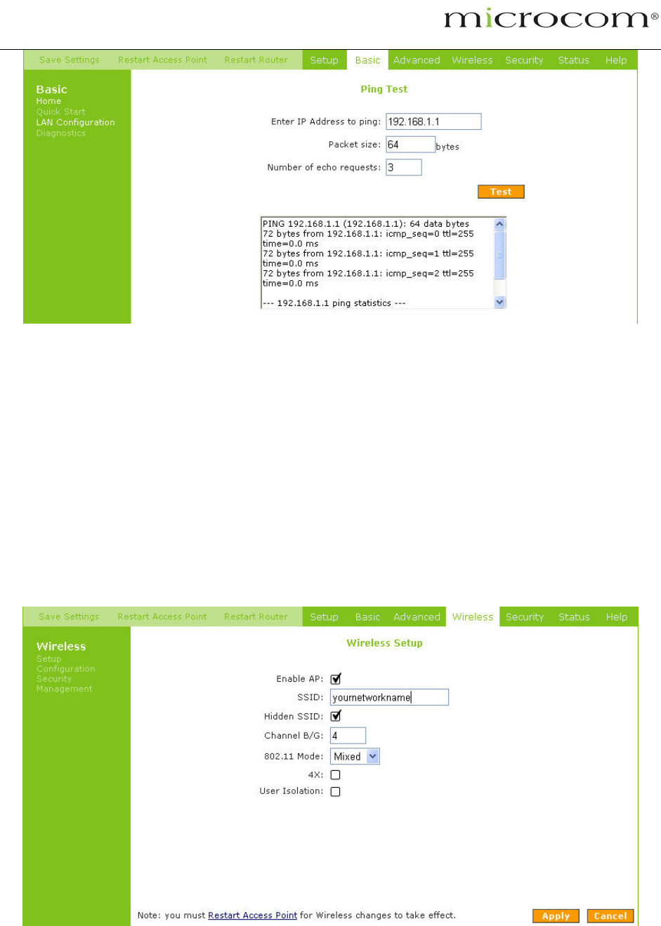 ireless setup allows the user to enable or disable the AP (access point for the wireless feature).